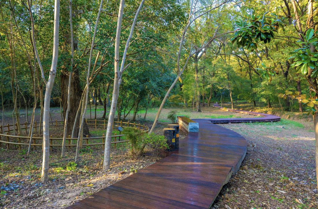 珍七线森林步道是老山步道系统改造工程中的一处重要部分节点。过去,这里步道陈旧、护栏腐坏,安全隐患突出。2023年,随着珍七线步道整体提升工程的推进,这里也迎来了“颜值”与“内涵”的双重升级。