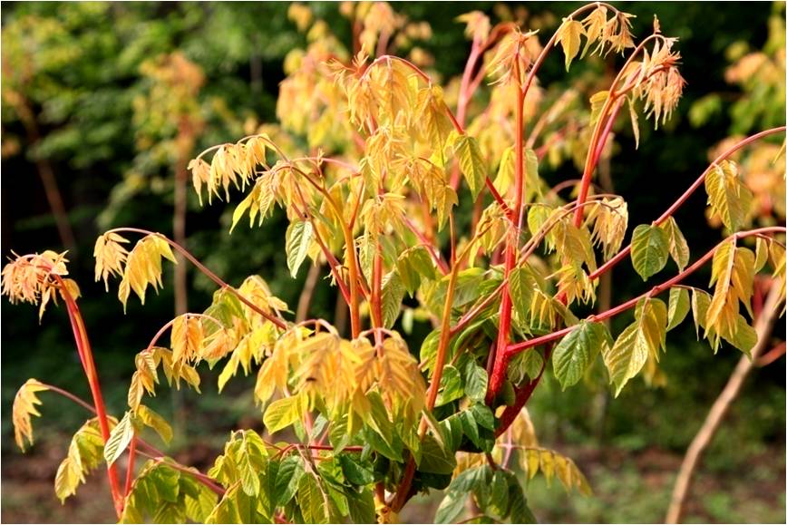 黄山栾树实生变异,春、秋观色叶品种。高大落叶乔木,树皮光滑不开裂;1-5年生苗树皮、枝条呈金黄色;花黄色,蒴果粉红色,花期7-9月,果期8-10月。春季萌芽抽枝时,新梢枝叶呈桔红色,春季嫩叶观赏期30天以上;10月上旬叶片开始变为金黄色,秋季黄叶观赏期达60天以上。可用作景观和道路绿化。
