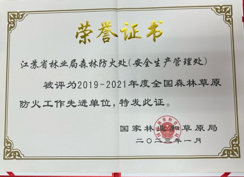 近日,国家林草局发文表彰了2019-2021年度全国森林草原防火工作先进单位和先进个人。江苏省林业局森林防火处(安全生产管理处)、南京市江宁区秣陵街道森林消防中队荣获全国森林草原防火工作先进单位,苏州市吴中区董务闯、连云港市锦屏林场梁亚伟、句容市磨盘山林场谢玉祥荣获全国森林草原防火工作先进个人。