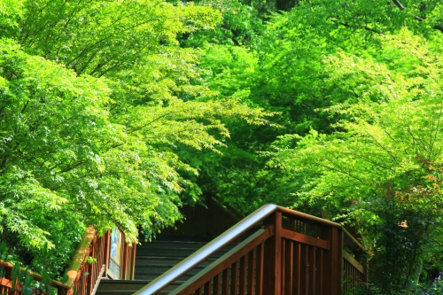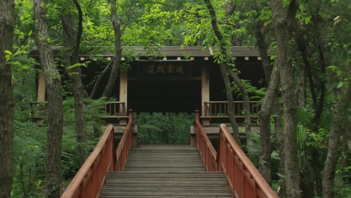 森林步道在原有道路基础上进行升级改造,多为木栈道、登山石道等。登山石道使用山中原有砂岩或青石板铺设,串联各景点,方便游人于蜿蜒起伏的道路上游览观光,增加游览趣味;园路主要位于山下平坦路段及山中林间,串联了凡问道、禹王碑、天开岩、红叶谷、枫林湖等景点;木栈道设置在临水、地貌复杂或主路伴随处,为热爱徒步旅行游客所钟爱,并综合布置景亭、观景平台等休憩节点。