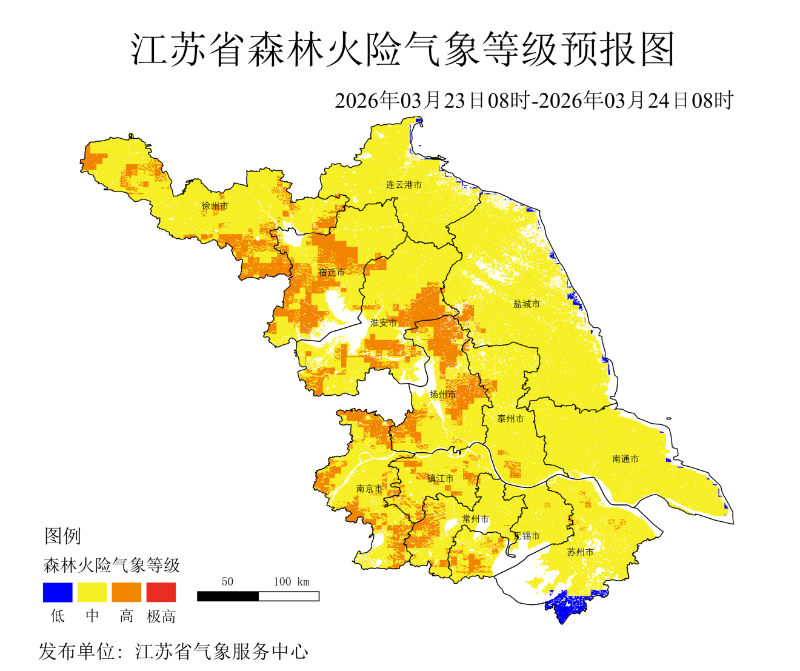 2026年3月23日08时-3月30日08时,全省整体森林火险气象等级为二级,属中度风险,较易燃烧蔓延,需加强防范。未来7天,23日多地风速较大,尽管有零星降水,也为三级高风险,24-28日全省普遍降至二级。29日起,多区域进一步降至一级低风险。全省无四级及以上极高风险区域,火险整体呈逐步下降趋势,后期降水增多,火险隐患持续降低。