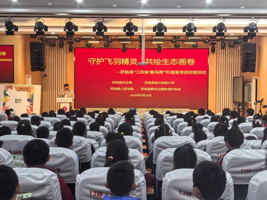 春眠不觉晓,处处闻啼鸟,四月的盱眙正是草木葱茏、百鸟争鸣的时节。为进一步增强少年儿童野生动物保护意识与法治观念,4月20日,盱眙县林业局联合县人民法院、县野生动物保护协会,走进盱眙县宣化实验小学,开展以“守护飞羽精灵 共绘生态画卷”为主题2026年江苏省爱鸟周活动。